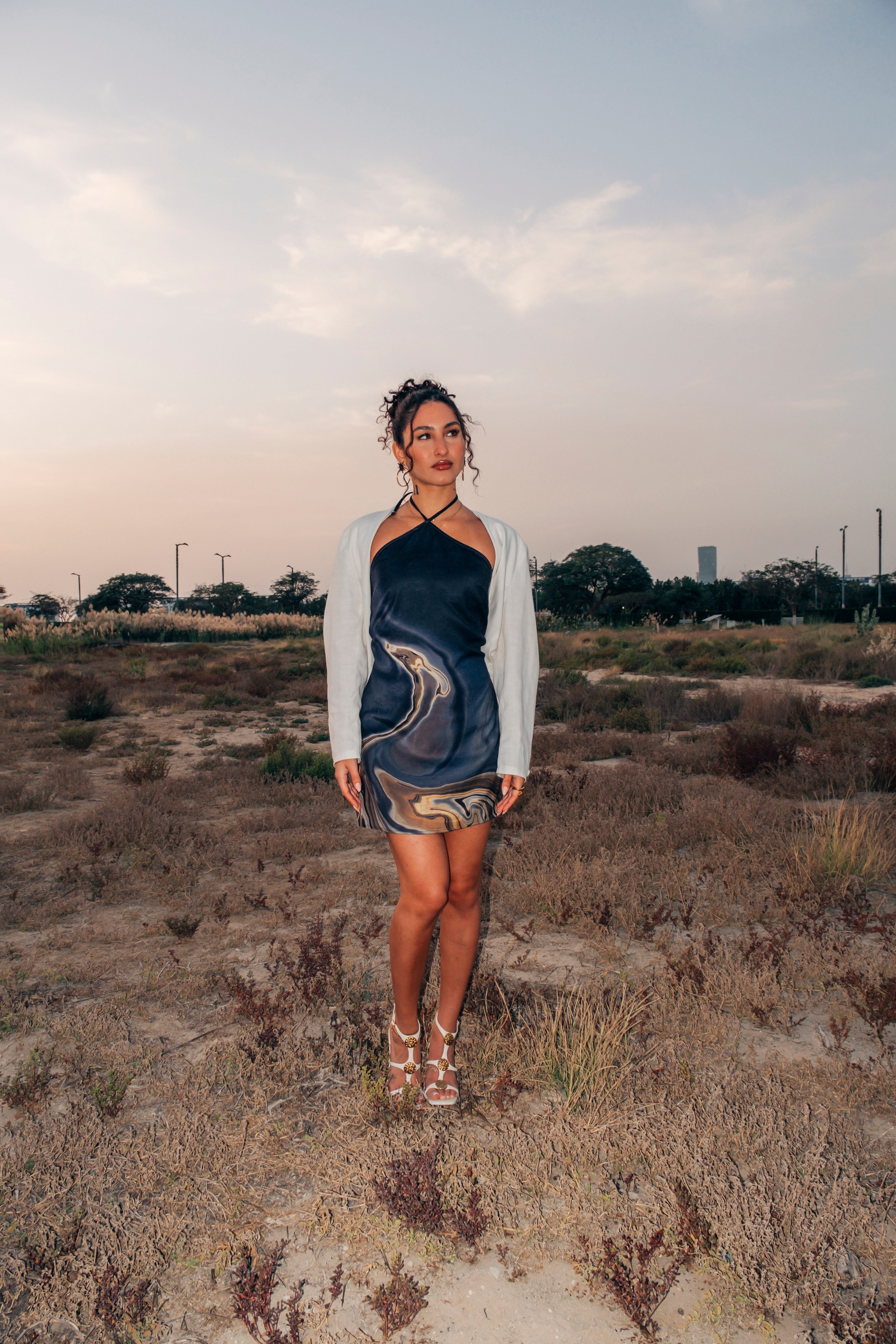 Inspired by the serenity of the desert and the strength of Riyadh. This piece reflects softness and power in equal measure, feminine, grounded, and a little mystical.