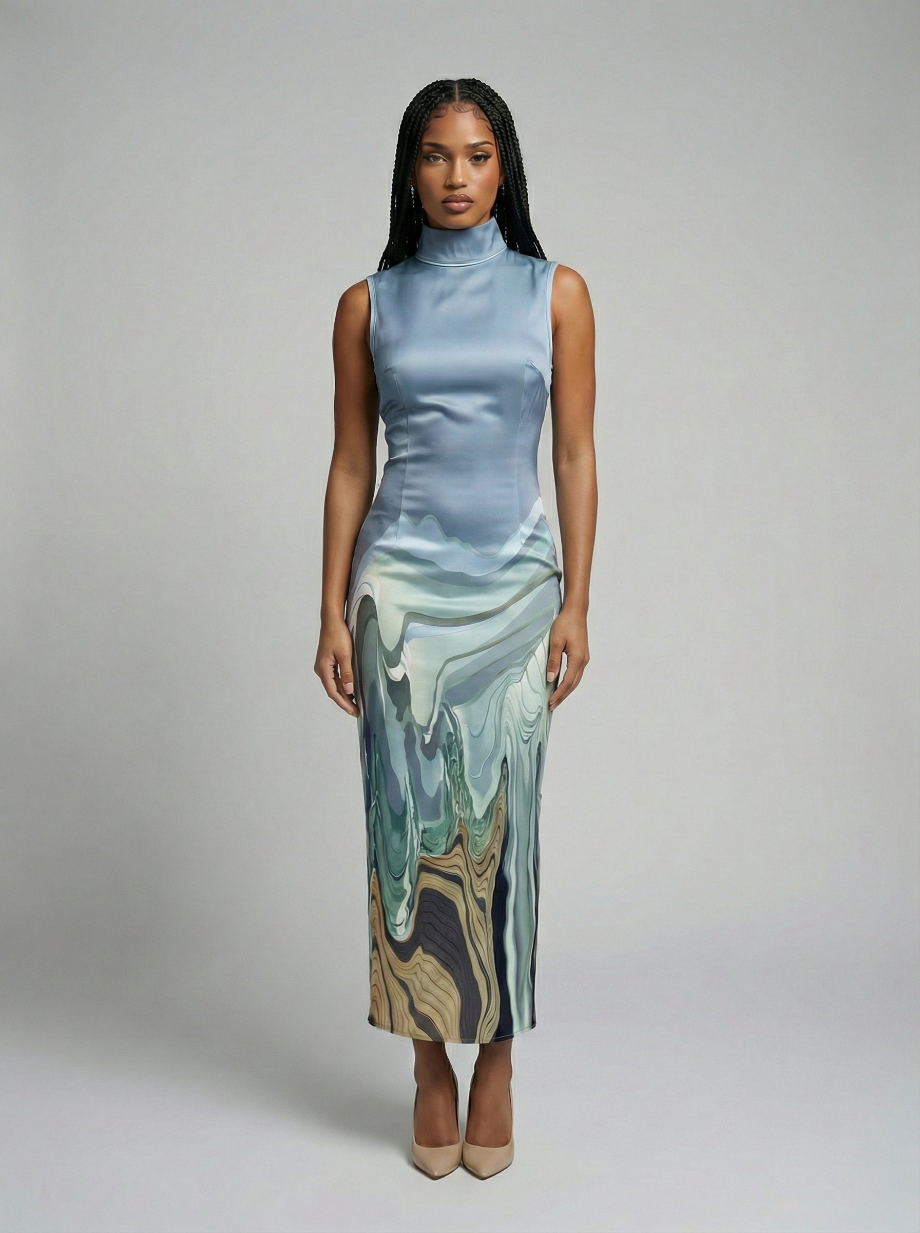 For Her: Style the Skyline Flow dress with beige heels and simple gold jewelry for a refined, confident look.