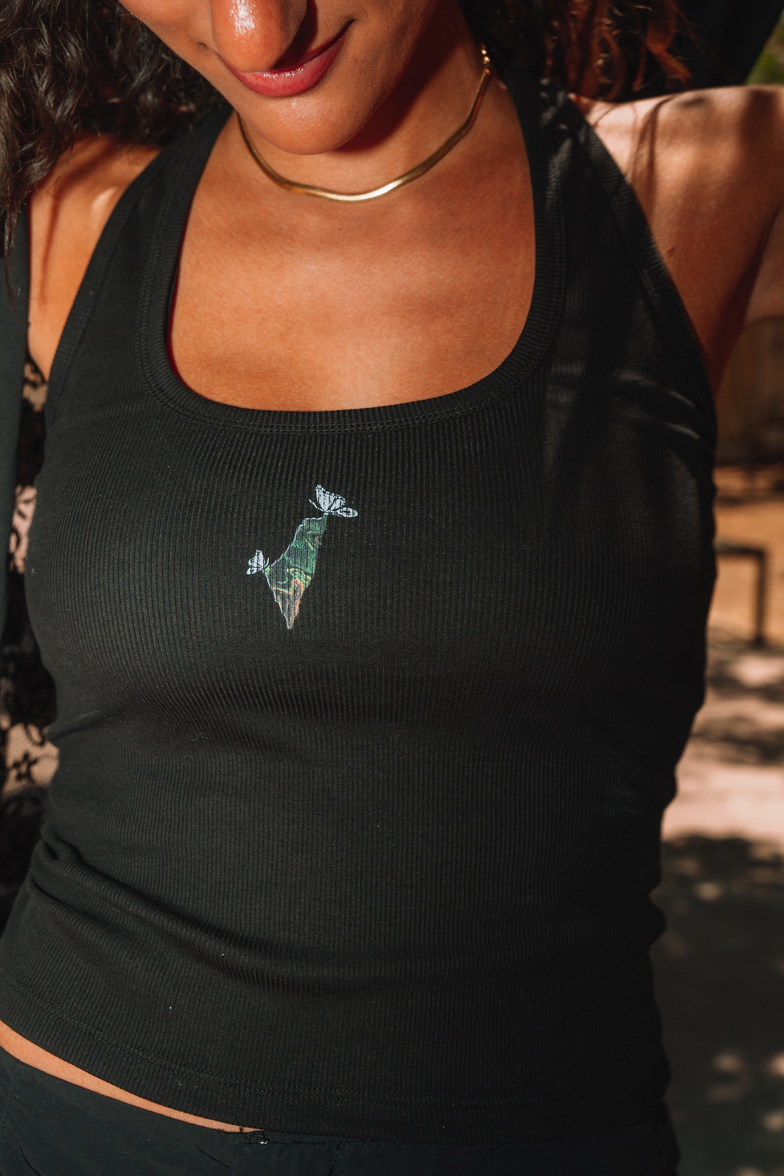 Paying a tribute to a homeland carried in the hearts of millions, the Butterfly Effect Tank features the map of Palestine with two butterflies, symbolising the butterfly effect, the idea that even the smallest act of resistance or remembrance can ripple outward and contribute to liberation.